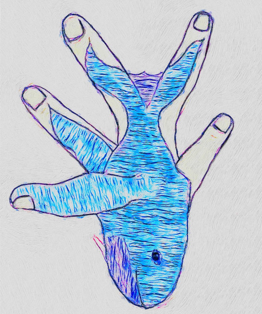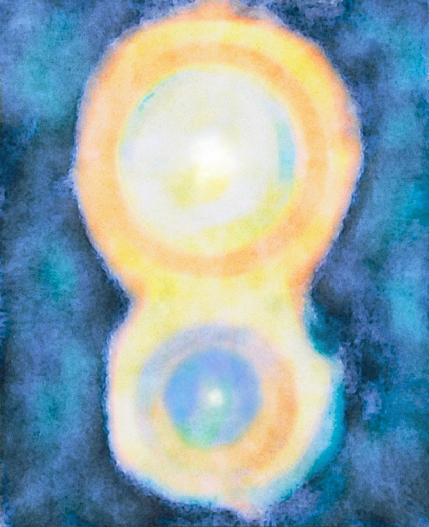 Light Force around the figures is an atomic reaction that happens when molecules are rubbed together through the handmade creative process. Light is the product of art much like cavemen created fire by heating, much like humans can feel the warmth in the touch of their hands. Technological pixelated form develops into a more flexible medium that generates warmth and lightness when it is in connection with the organic atomic structures or develops into a visuality based consciousness.