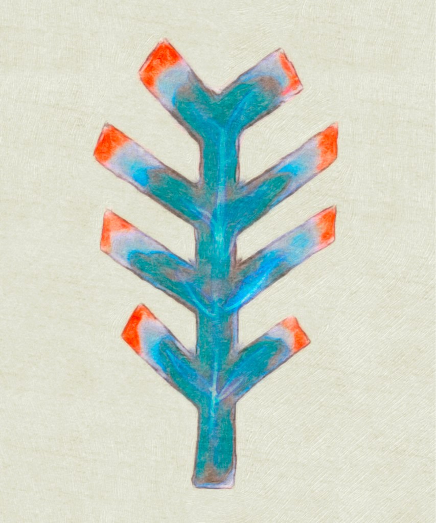 Verticality of the symbol expresses the speciality and the difference of growth from other beings while connecting humans into the growth of the whole natural ecosystem.