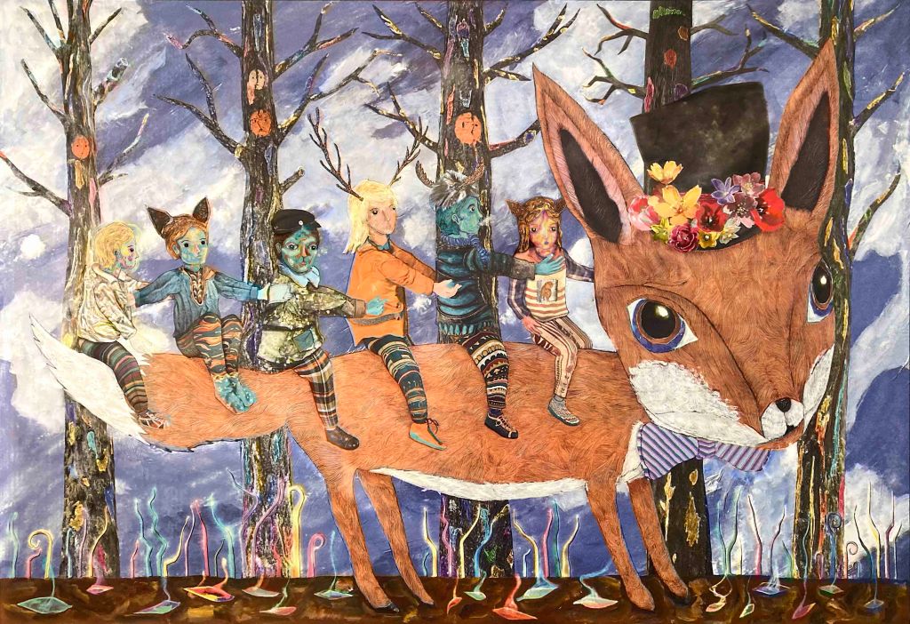 Fire Fox, oil and ink on polyester, 46 x 38 cm. 2024